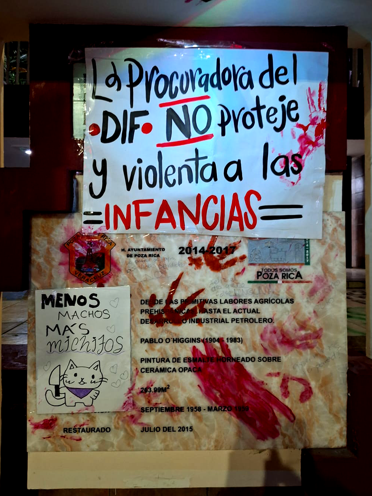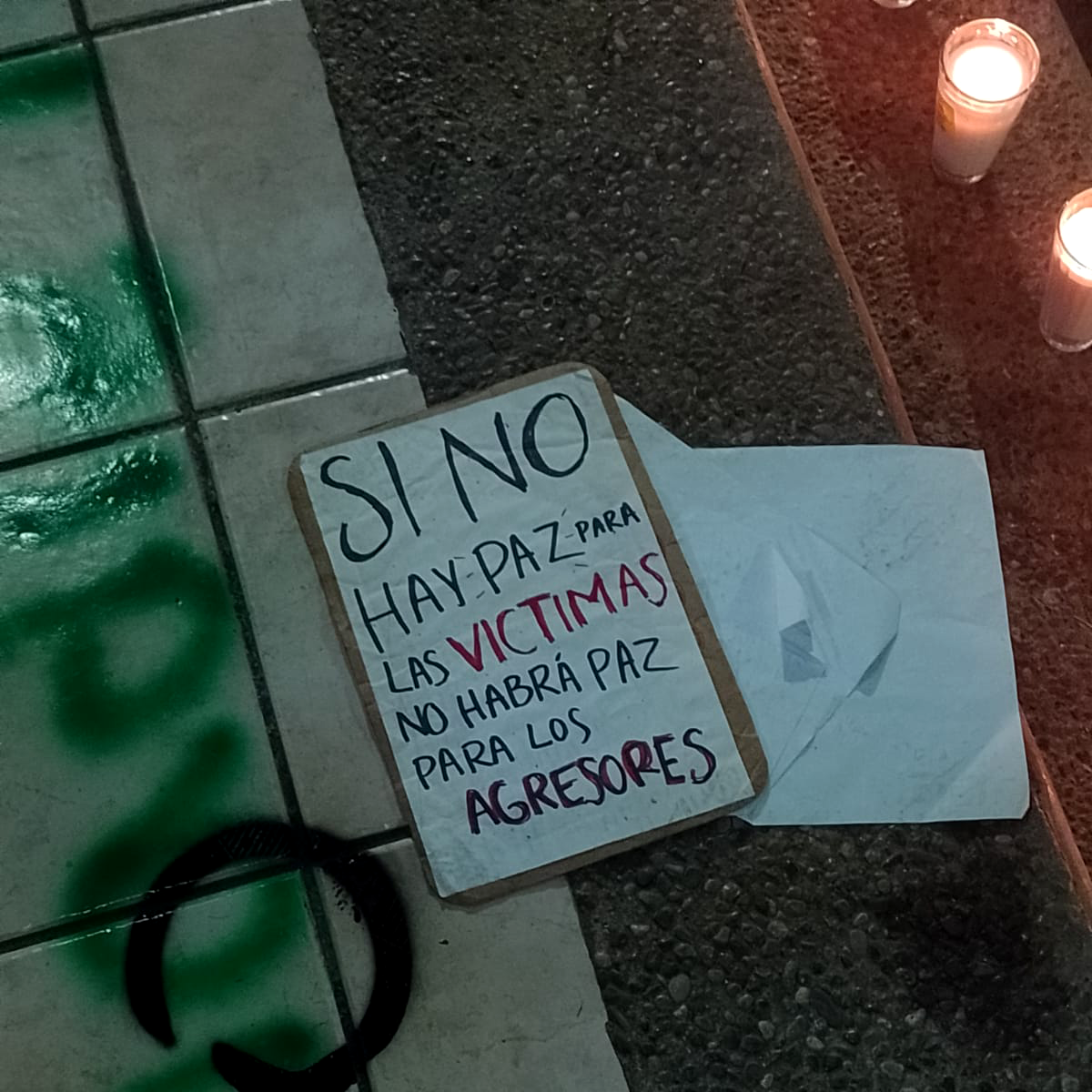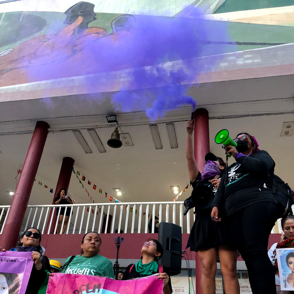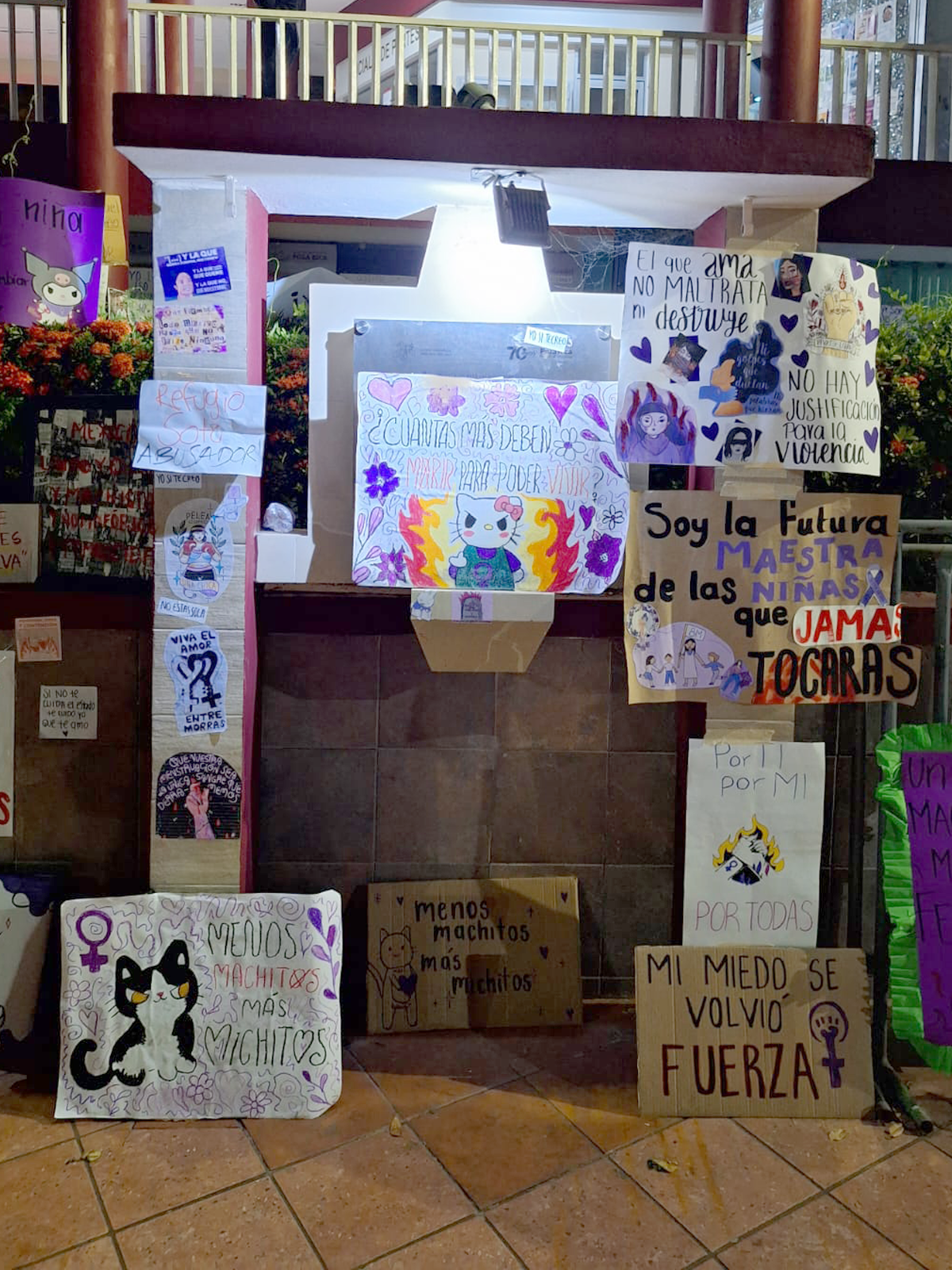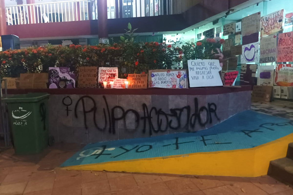 Sentimientos encontrados al escuchar el pase de lista y el canto a una sola voz de «Canción sin Miedo» de Vivir Quintana. Posteriormente, procedieron a colocar lo que ellas llaman: el tendedero de acosadores, agresores y deudores alimenticios, para exigir la justicia que se les ha negado.