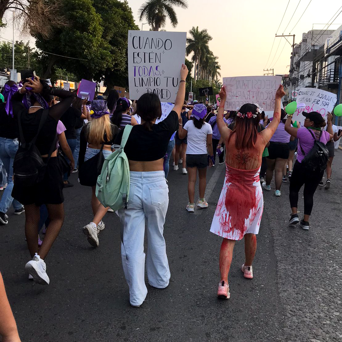 Todo el recorrido por el Blvd. Adolfo Ruiz Cortines se realizó de manera pacífica pero firme. Cada paso era un grito al unísono hasta desgarrarse la voz; acudiendo más mujeres al llamado que desde sus balcones se asomaban para apoyar. Una acción que se repetió durante todo el recorrido.