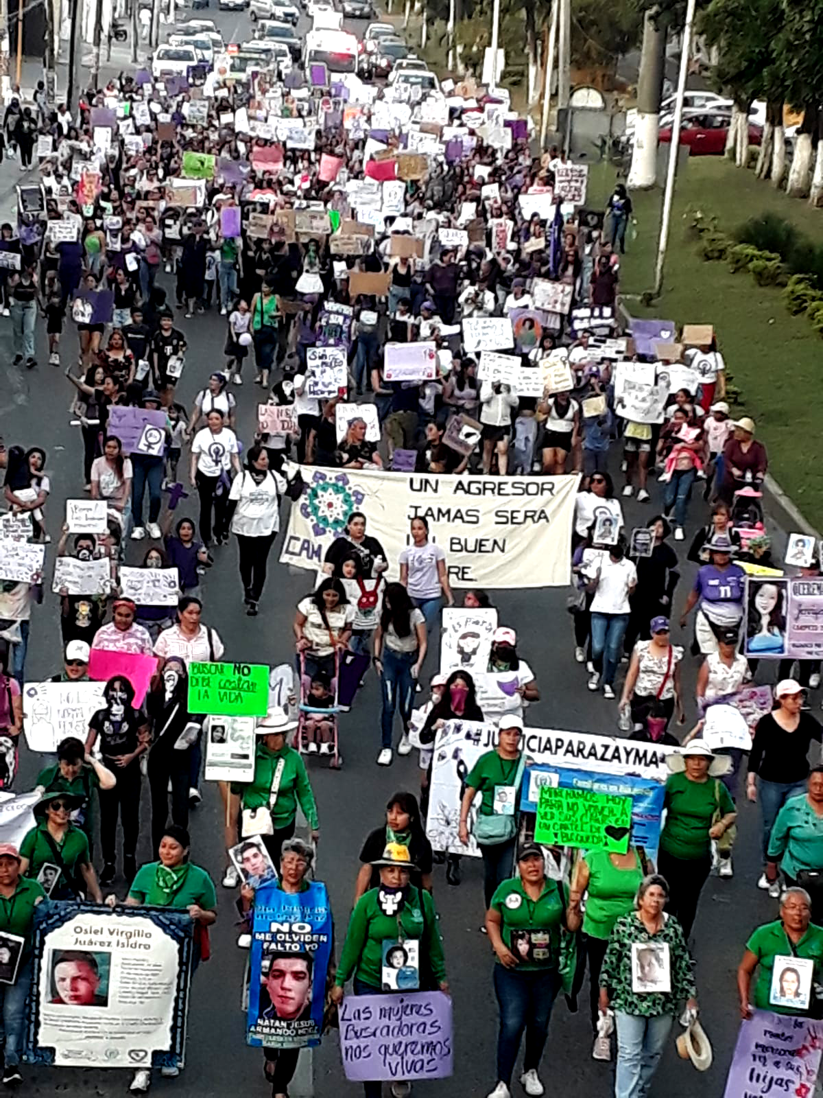 La Maquinita de la colonia Las Palmas fue el punto de encuentro. Alrededor de 1,500 madres, hijas, niñas, estudiantes, trabajadoras e incluso mujeres policias (por primera vez se asignó exclusivamente a mujeres policias para resguardar el contingente), se dieron cita para alzar la voz por la defensa de sus derechos, la eliminación de desigualdades y el reclamo legítimo de justicia.